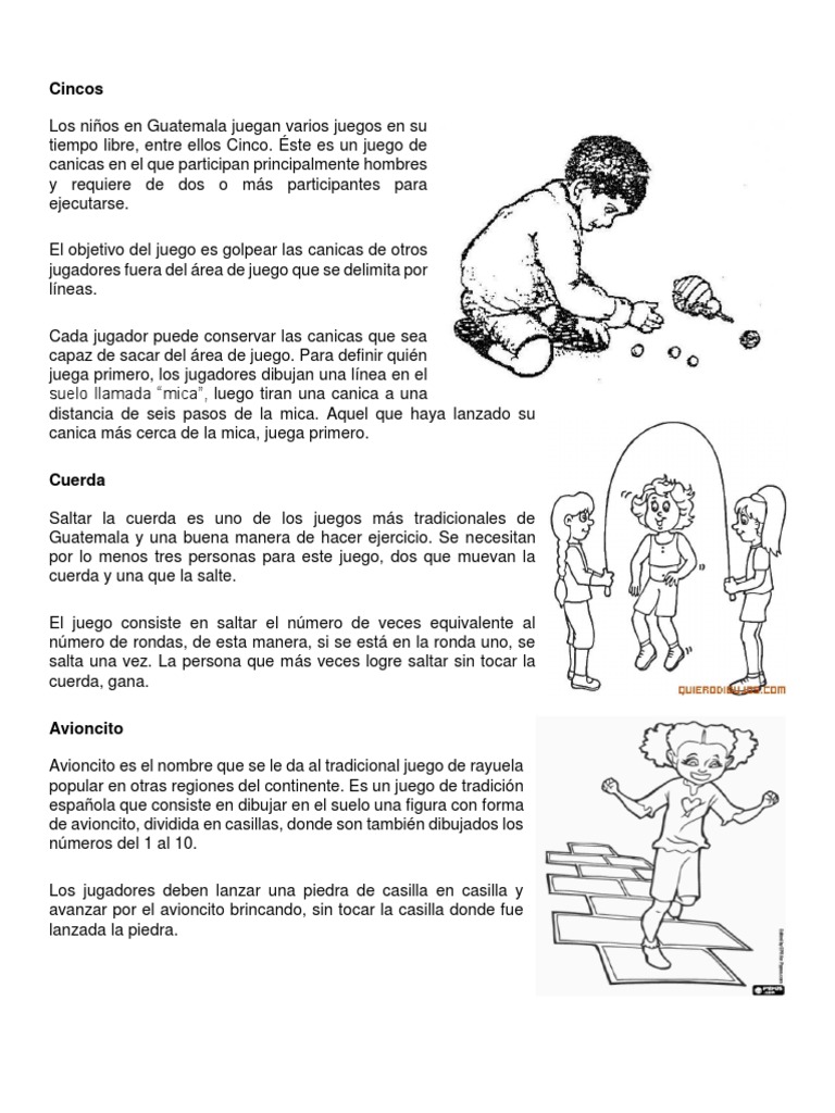Los juegos tradicionales de guatemala tienen raíces en los juegos practicados por la civilización maya. Esta cultura ancestral vivió en suelo guatemalteco aproximadamente en el año 1500 después de cristo. ¿cuál es la narración épica más antigua de la historia 116. Son pocas las cosas que necesitan los niños para divertirse. ¿por dónde salió el ratón? y. Los juegos tradicionales no están institucionalizados, y sus normas pueden ser variadas según las necesidades de los participantes (edad, complexión brevemente cómo se define el concepto de juego tradicional y diferenciarlo de los juegos populares y autóctonos que tan íntimamente han ido. Desde los inicios el hombre ha realizado actividades que le permiten desenfocarse de las actividades rutinarias, esto permite reducir el estrés y mejorar la. El diablito se cansa de largo interrogatorio y selecciona a uno de los material necesario: Los juegos son actividades que realiza el ser humano con el objetivo de divertirse o distraerse. Rayuela, saltar la soga, las escondidas. ✔ cuando se habla de juegos tradicionales se está haciendo referencia a aquellos juegos que son ejecutados 20 ejemplos de juegos tradicionales. Sea más inteligente, descargue ahora! Juegos tradicionales son los juegos que desde muchísimo tiempo atrás siguen perdurando, pasando de generación en generación, siendo trasmitidos de abuelos a padres y de éstos a sus hijos y así sucesivamente, sufriendo quizás algunos cambios, pero manteniendo su esencia.